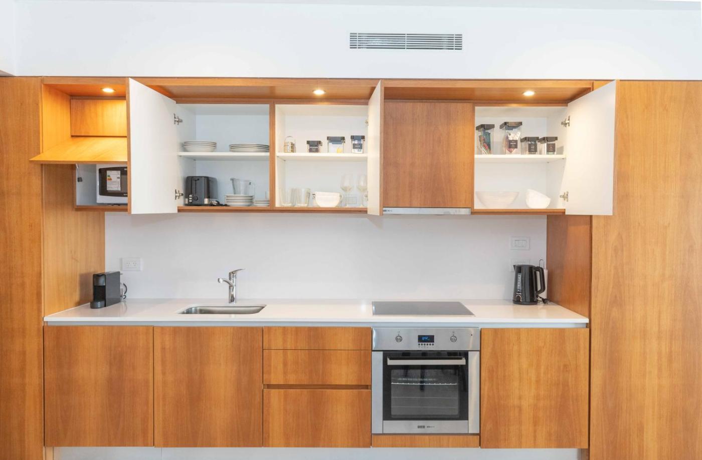 One-Bedroom Apartment. Boasting a private entrance, this air-conditioned apartment includes 1 living room, 1 separate bedroom and 1 bathroom with a bath and a shower. In the fully equipped kitchen, guests will find a refrigerator, kitchenware, an oven and a microwave. The spacious apartment offers a flat-screen TV with streaming services, a washing machine, a tea and coffee maker, a seating area as well as city views. The unit has 3 beds.