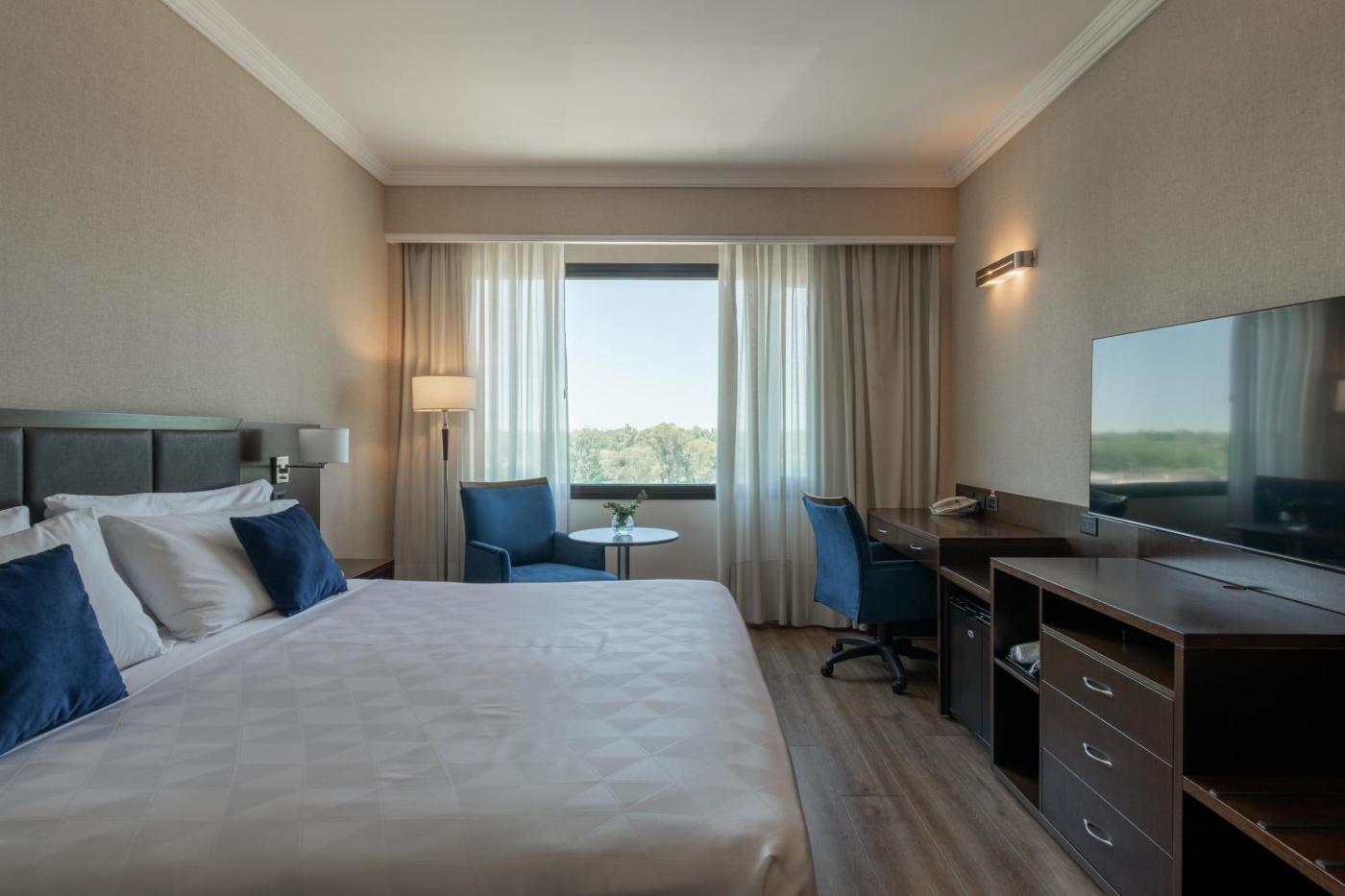 Marriott Hotel Buenos Aires Ezeiza Airport has spacious rooms with air conditioning, free internet access, flat-screen cable TV, work desks with ergonomic chairs, and seating areas with minibars.rooms have open city views and private bathrooms with baths.