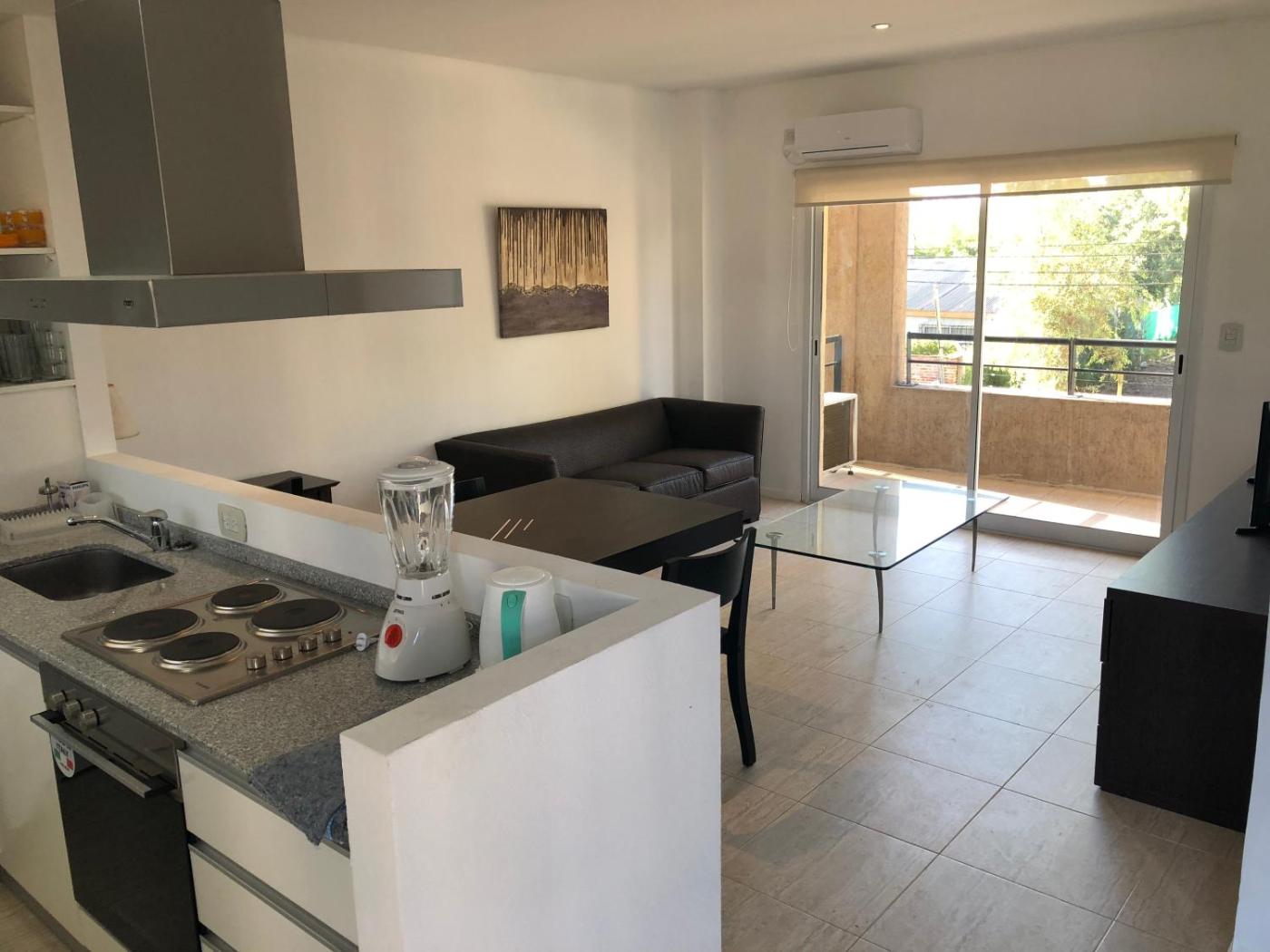 One-Bedroom Apartment. Boasting a private entrance, this air-conditioned apartment comes with 1 living room, 1 separate bedroom and 1 bathroom with a bath and a shower. Guests can make meals in the kitchen that features a stovetop, a refrigerator, kitchenware and an oven. Featuring a balcony with city views, this apartment also features a washing machine and a flat-screen TV with cable channels. The unit has 2 beds.